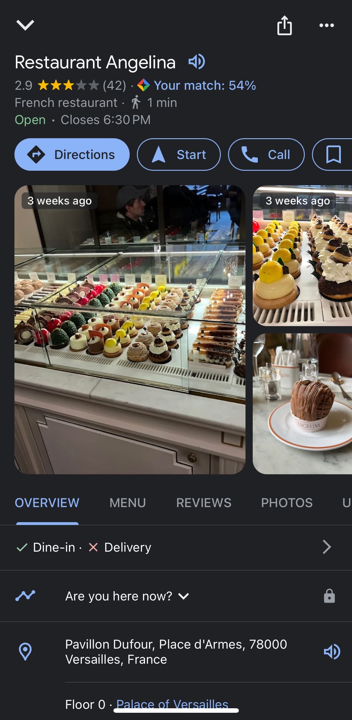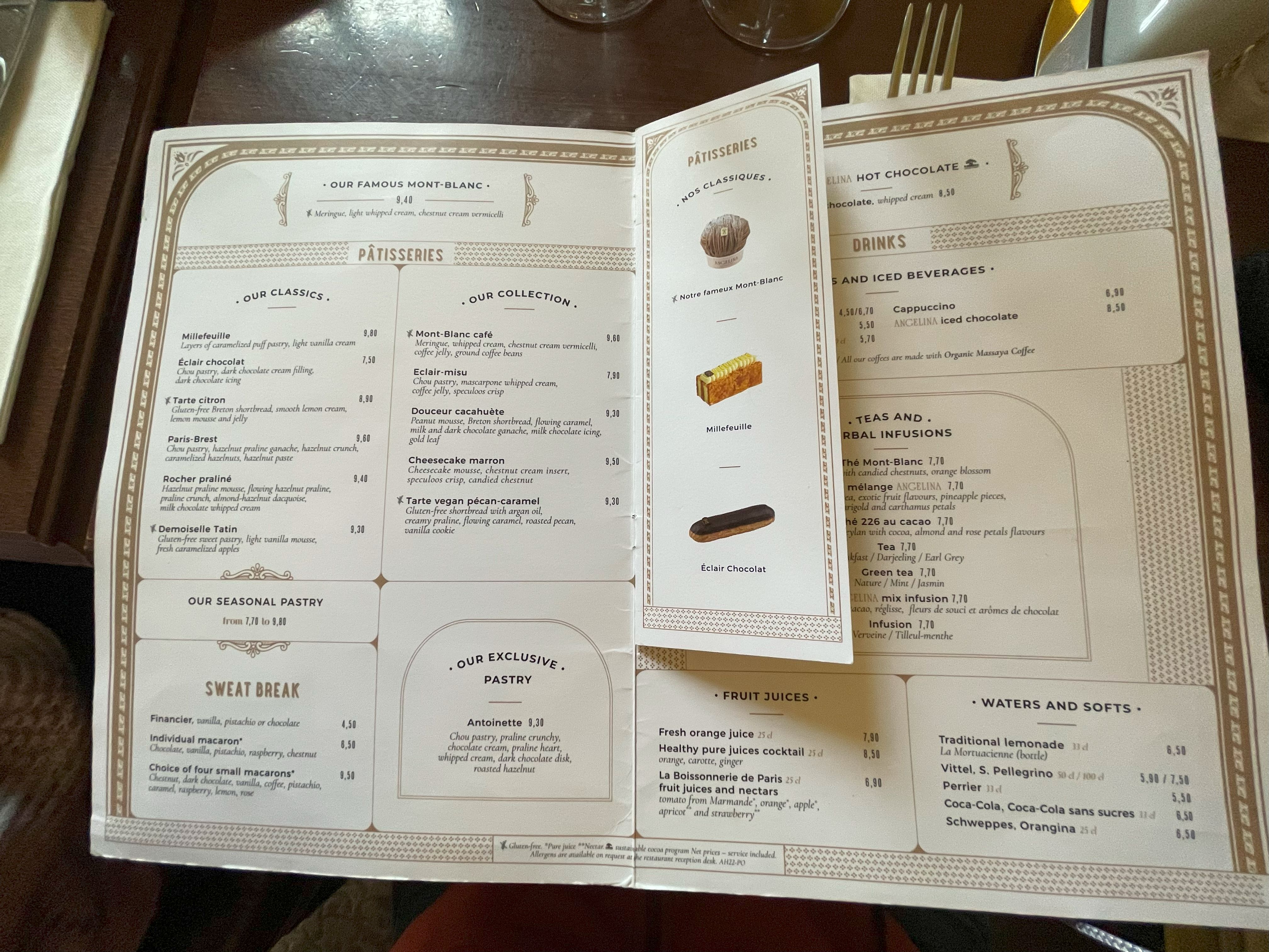 Lunch at Restaurant Angelina(dining at the Versailles Palace), it was great, shared a bottle of white, plus desert tiramisu and Mont Blanc