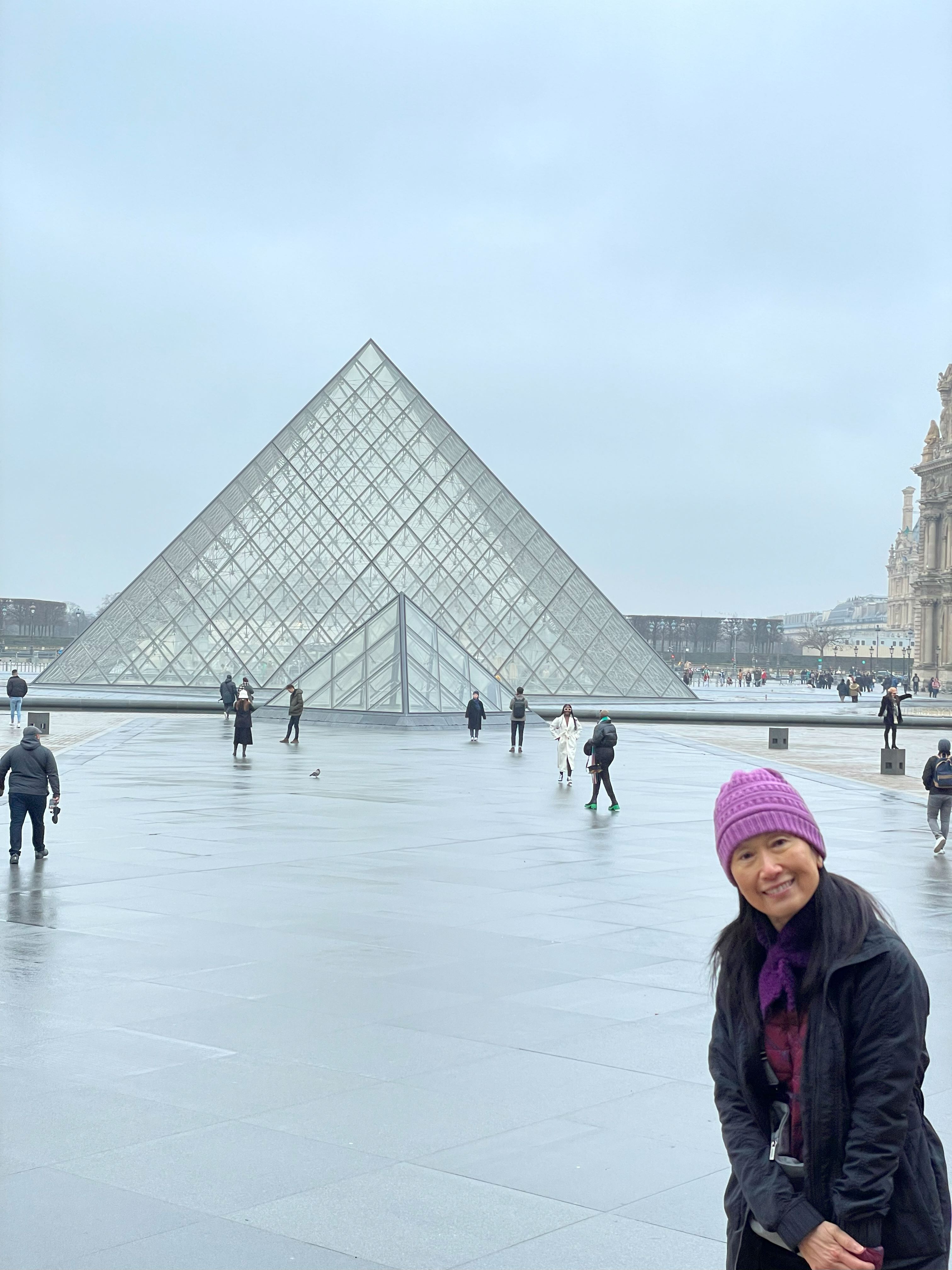 Early morning walked to BigBus pickup location, and took BigBus tour to Louvre. When we did the Louvre tour the first day, it was mainly inside, and didn’t see the Pyramid well, this time we looked it from outside and it was awesome!