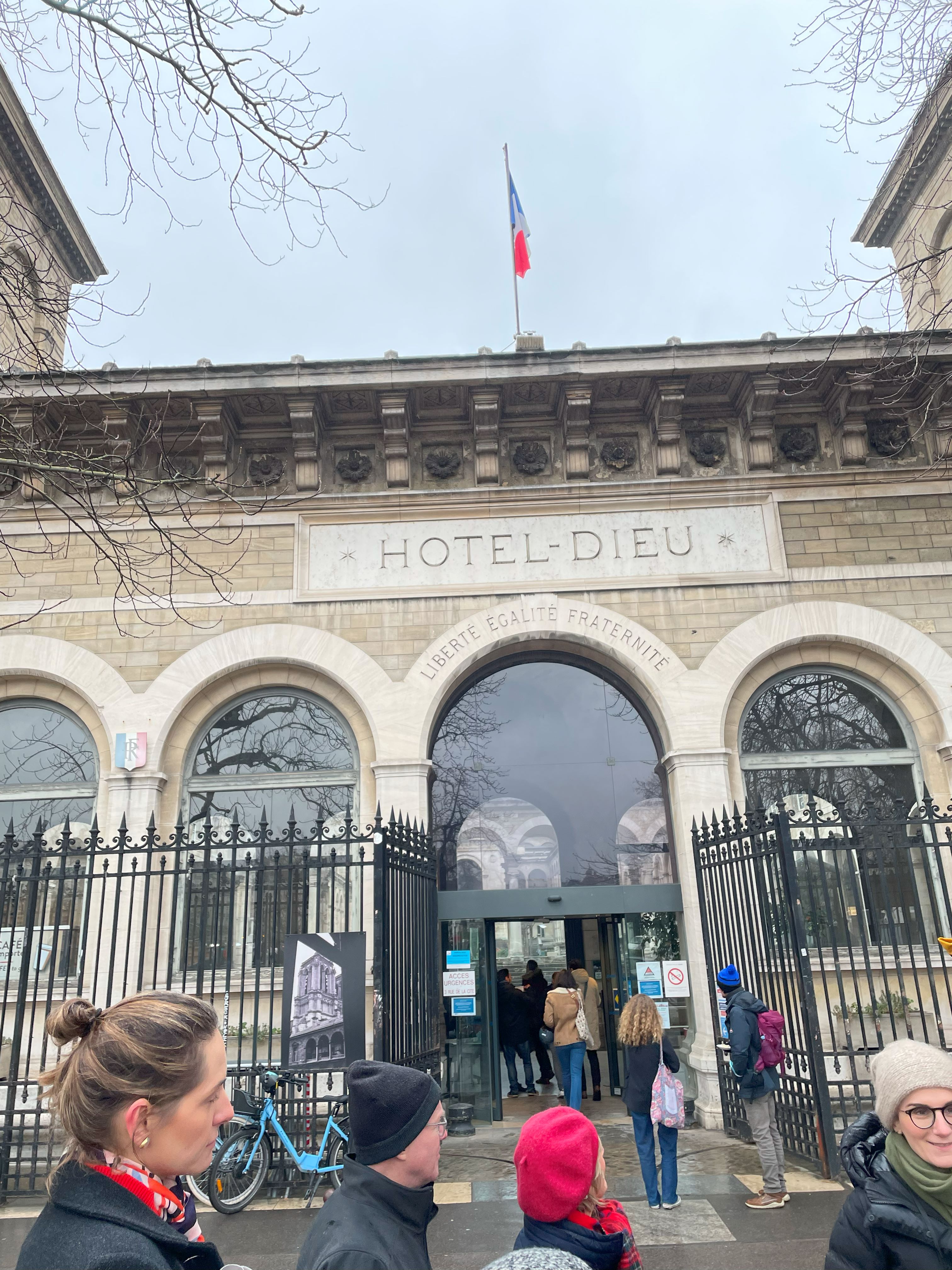 Next we hopped on the metro to another walking tour – Norte Dame, where we met our tour guide Sophia in front of the entrance. Of course we didn’t ‘get in’, since the church was burned and closed since 2019, it is going through rebuild now, French President Emmanuel Macron claimed that he will have the restore completed by 2024 Paris Olympic, but I doubt it. So we just walked around Norte Dame, which is very close to Latin Quarter. Also learnt that hotel in French means hospital.