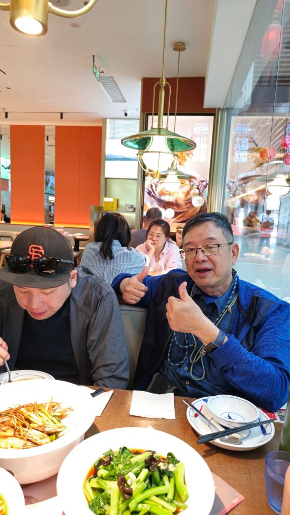 二十六号下午到虹桥机场,阿康、老倪來接机。到阿康家小坐,第一次碰到小潘。阿康住在浦西,距倪建平處很近。阿康和倪在浦東都有投資房產,在湯臣那一塊,那一區叫陸家嘴,上海金融中心。晚上阿康做东,在老吉士吃上海菜。